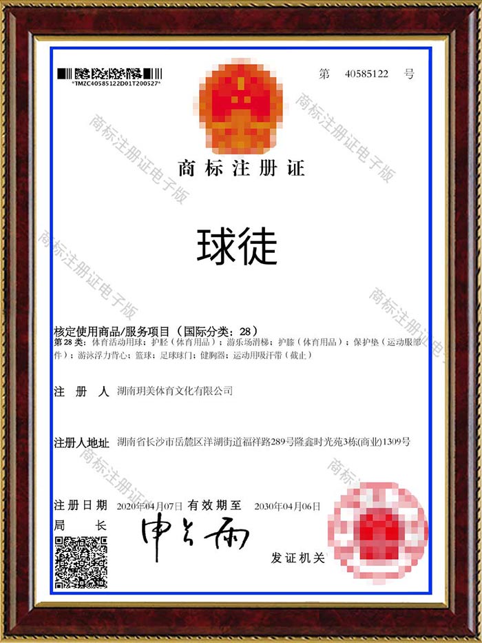球徒28類(lèi)商標(biāo)注冊(cè)證